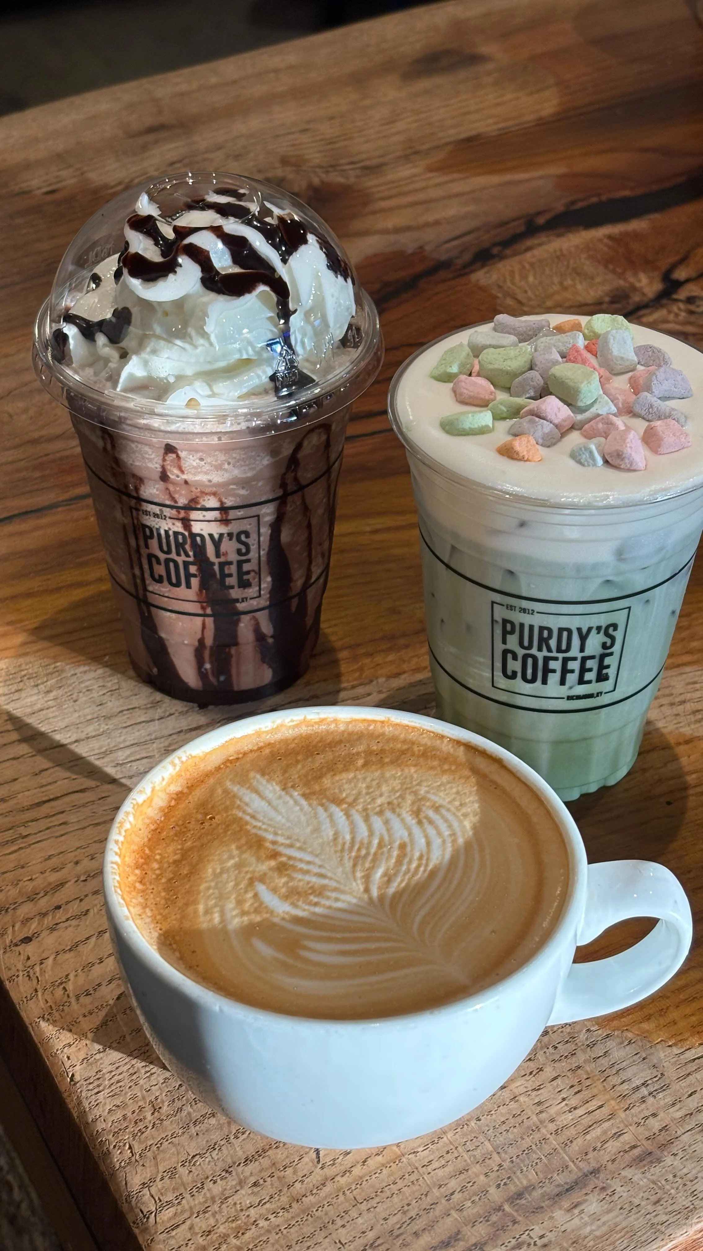 Founded in 2012, Purdy’s Coffee is a Richmond staple known for handcrafted drinks, scratch-made food, and a hospitality-first experience. With two locations; a convenient drive-thru café on Big Hill Avenue and a charming shop tucked inside a historic Main Street building, we’re proud to serve our community with thoughtful attention to detail. Whether you’re exploring downtown Richmond, visiting EKU, or road-tripping through the Bluegrass, stop in for a signature latte and experience why Purdy’s has been a local favorite for over a decade.